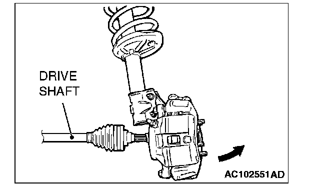 CAUTION: Do not apply pressure to the wheel bearing by the vehicle weight to avoid possible damage when the drive shaft is removed. If, however, vehicle weight must be applied to the bearing to move the vehicle, temporarily secure the wheel bearing by using special tools MB991000 and MB990998.