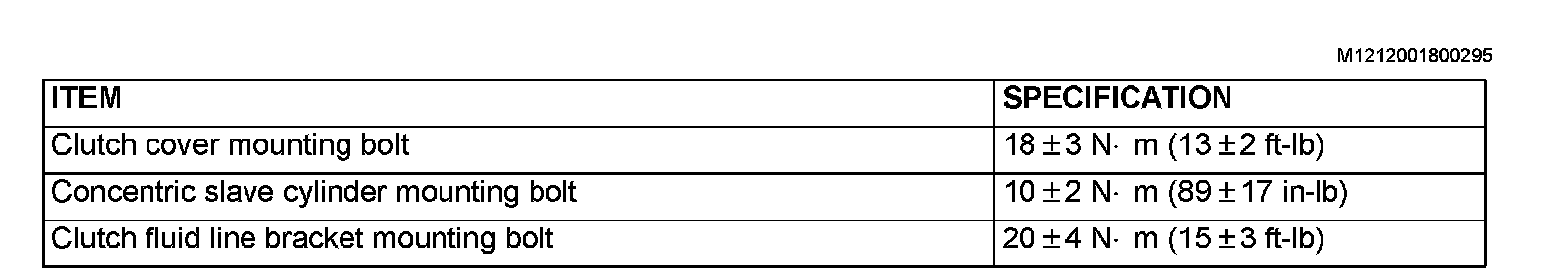 FASTENER TIGHTENING SPECIFICATIONS: