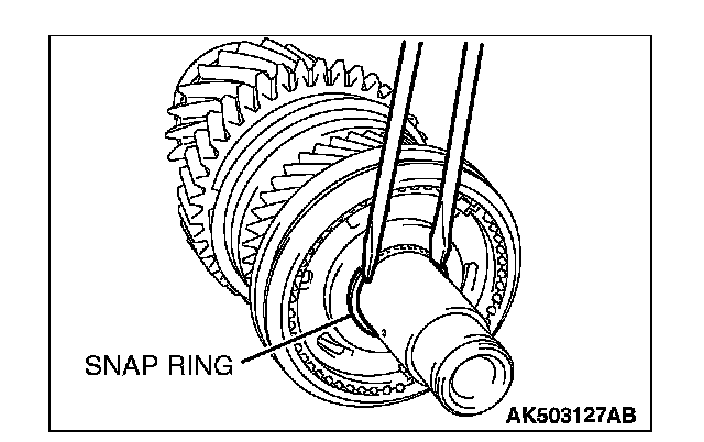 17. Select a shaft snap ring that allows distance of the thrust crevice of 5th-6th hub to fall within the standard value range.