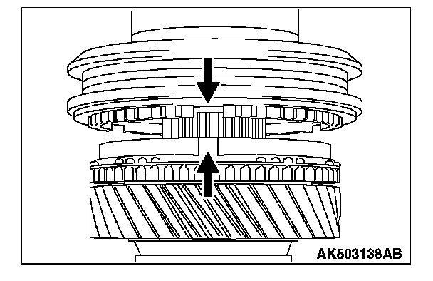6. Combine the transmission clutch hub No.4 with the transmission hub sleeve No.4 in the direction as shown in the illustration.
