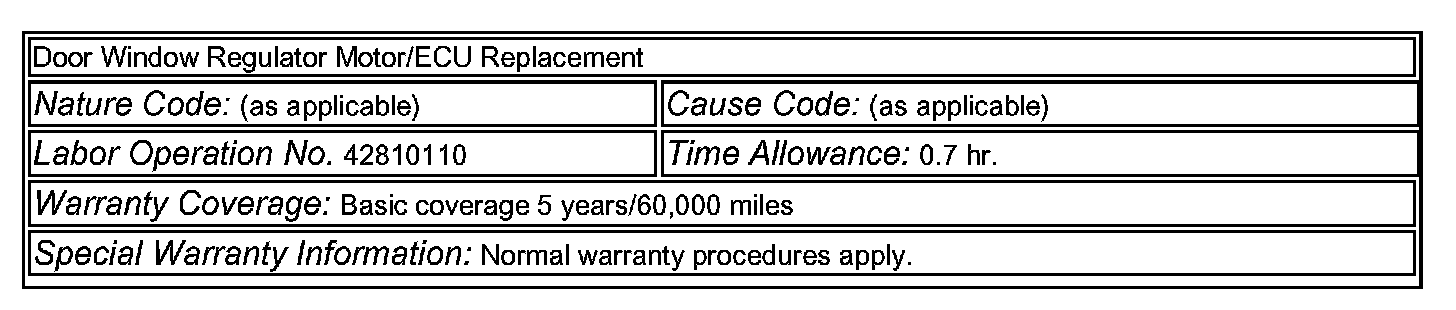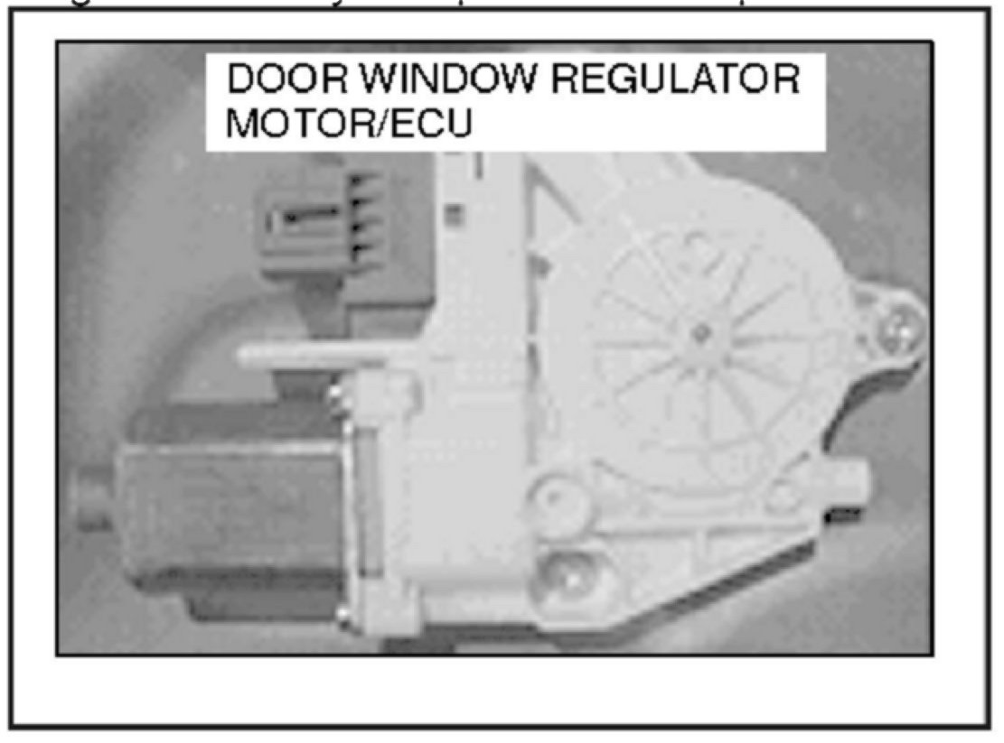 The door window regulator motor/ECU has been made available as a separate part from the door module assembly. If the door window regulator motorlECU requires replacement, it is no longer necessary to replace the complete door module assembly.