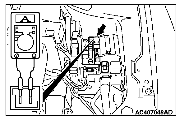 POWER WINDOW OPERATING CURRENT CHECK1. Remove the power window fuse and connect an ammeter as shown in the illustration.