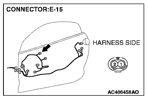 STEP 9. Check the wiring harness between inside handle switch (LH) connector E-15 (terminal 1) and ground.