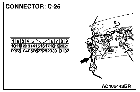 NOTE: Also check intermediate connector C-25 for loose, corroded or damaged terminals, or terminals pushed back in the connectors. If intermediate connector C-25 is damaged, repair or replace the damaged component(s) as described in General (Electrical), Harness Connector Inspection.