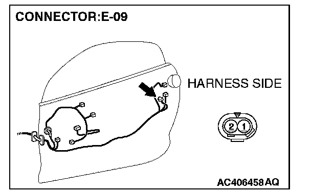 STEP 13. Check the wiring harness between power window motor (LH) connector E-16 (terminal 2)and outside handle switch (LH) connector E-09 (terminal 2).