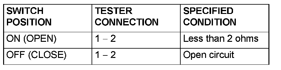 2. Check continuity when the inside handle switch (LH) is operated to "ON" or "OFF" position.