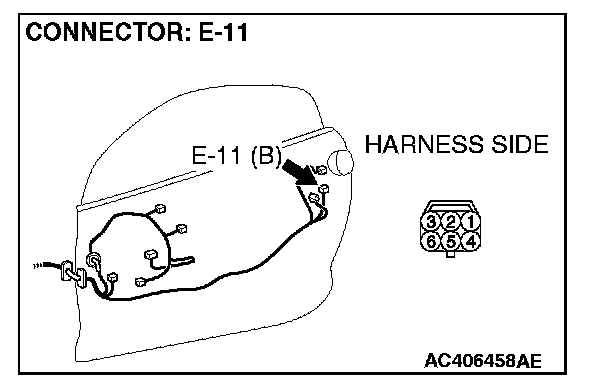 STEP 14. Check door lock actuator (LH) connector E-11 for loose, corroded or damaged terminals, or terminals pushed back in the connector.
