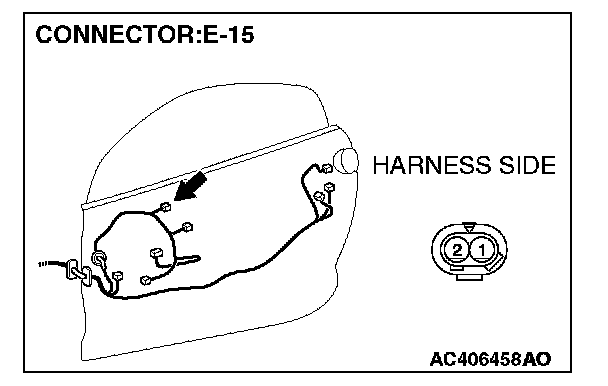 STEP 5. Check inside handle switch (LH) connector E-15 for loose, corroded or damaged terminals, or terminals pushed back in the connector.
