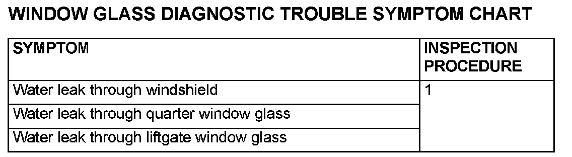 INSPECTION PROCEDURE 1: Water Leak Through Windshield/Water Leak Through Quarter Window Glass/Water Leak Though Liftgate Window Glass