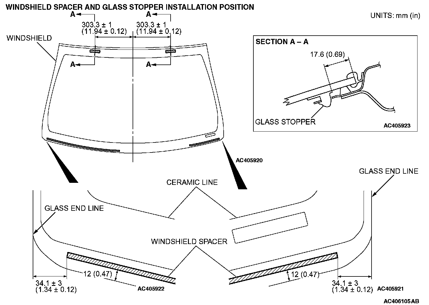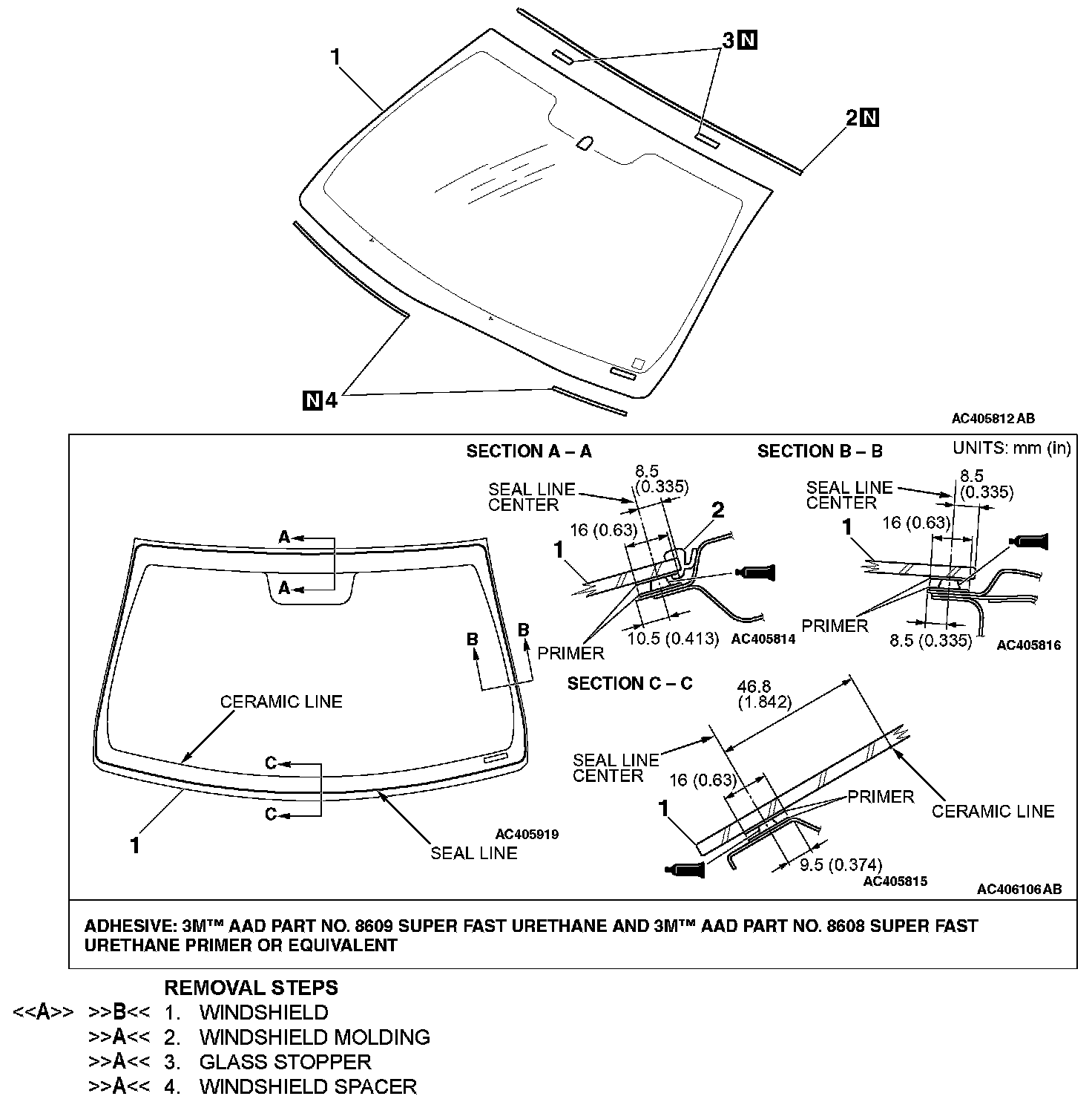 ]]A[[ WINDSHIELD SPACER/GLASS STOPPER/WINDSHIELD MOLDING INSTALLATION