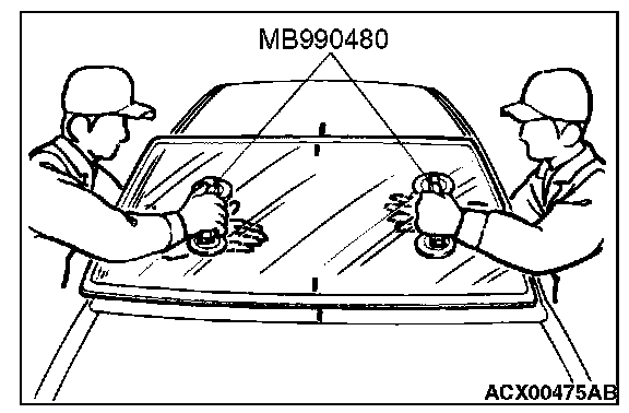 1. When replacing the windshield, temporarily set the windshield against the body, and place a mating mark on the windshield and body.