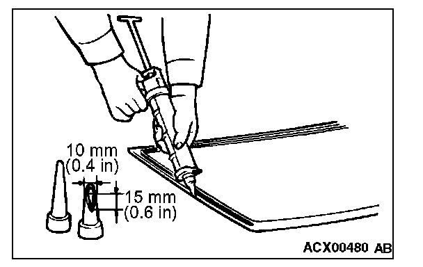 NOTE: Cut the tip of the sealant gun nozzle into a V shape to simplify adhesive application.