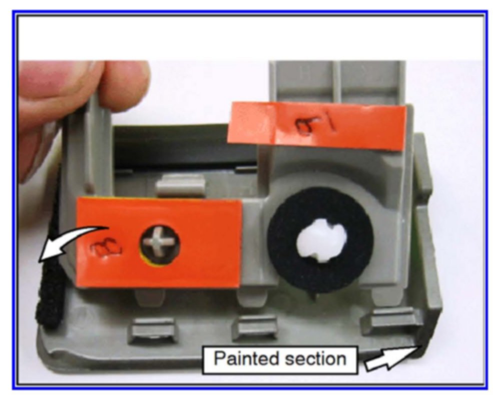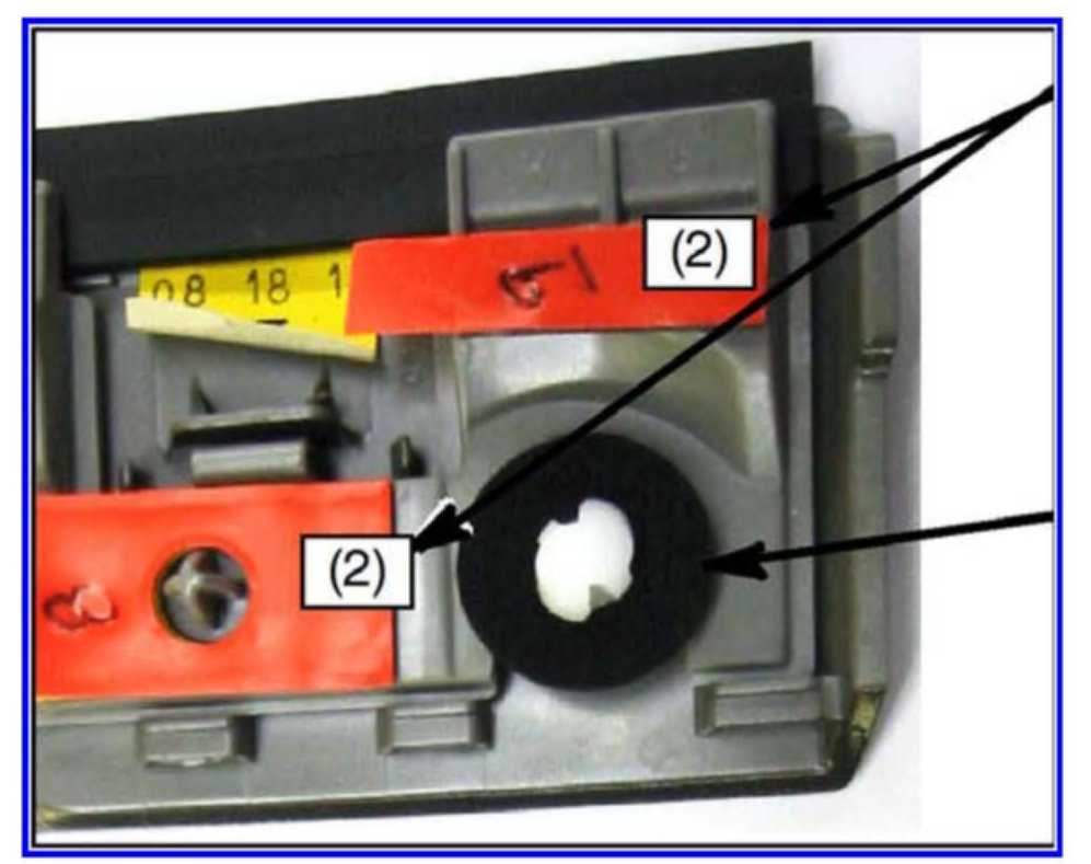 c. Cut a section of double-sided tape to size and replace the tape at both locations shown.