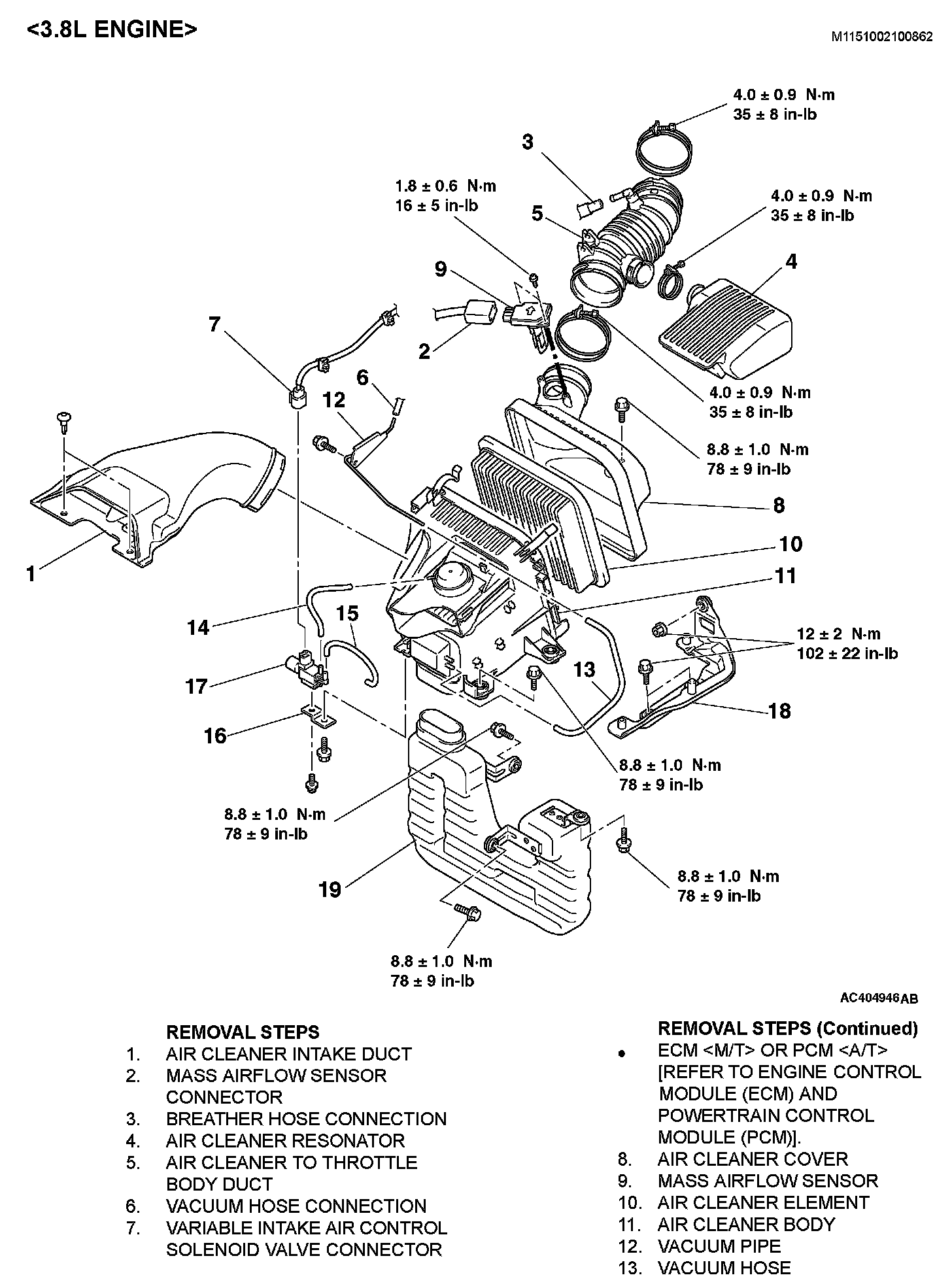 Removal Steps 1 - 19: