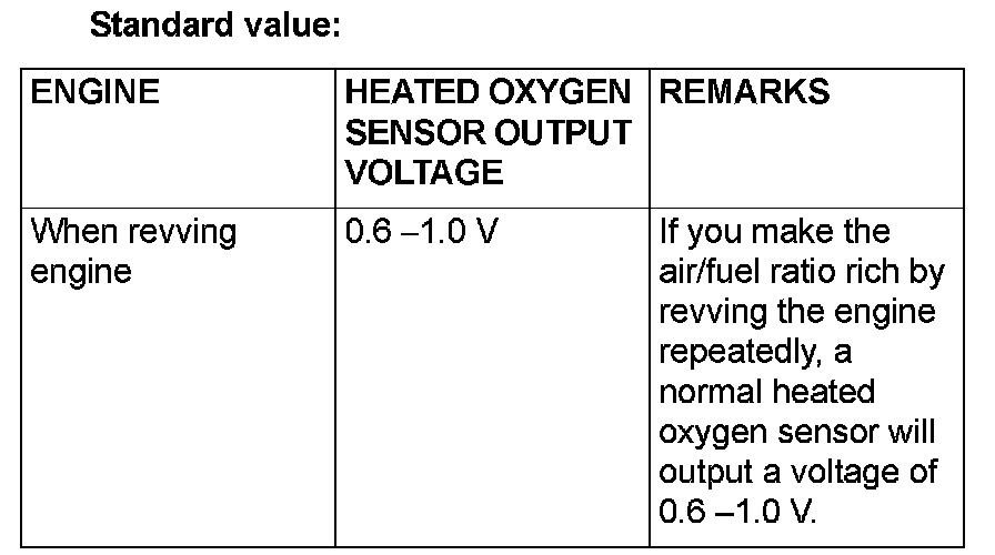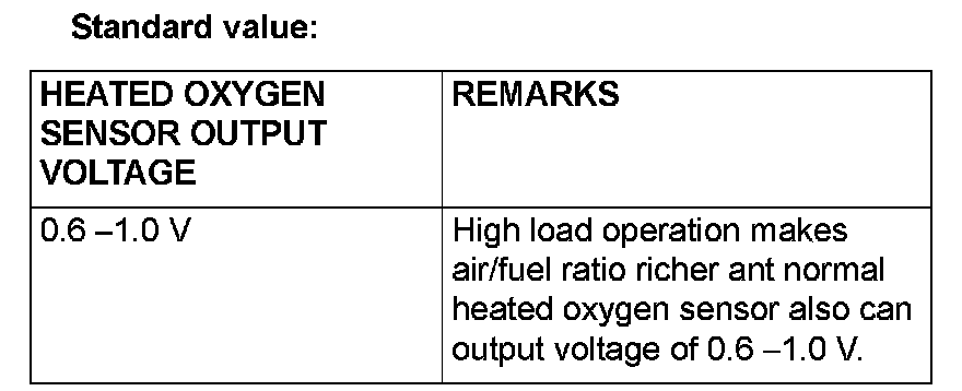 - If the sufficiently high temperature (of approximate 400 °C or more) is not reached although the oxygen sensor is normal, the output voltage would be possibly low although the rich air- fuel ratio.
