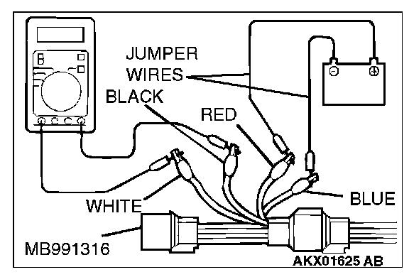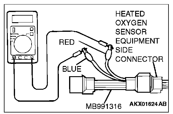 1. Disconnect the heated oxygen sensor connector and connect special tool MB991316 to the connector on the heated oxygen sensor side.