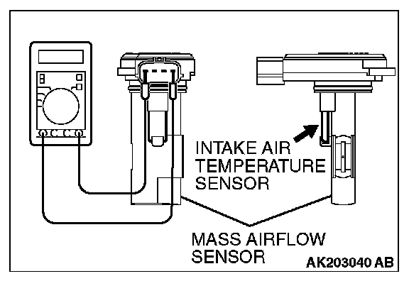 INTAKE AIR TEMPERATURE SENSOR CHECK1. Disconnect the mass airflow sensor connectors.