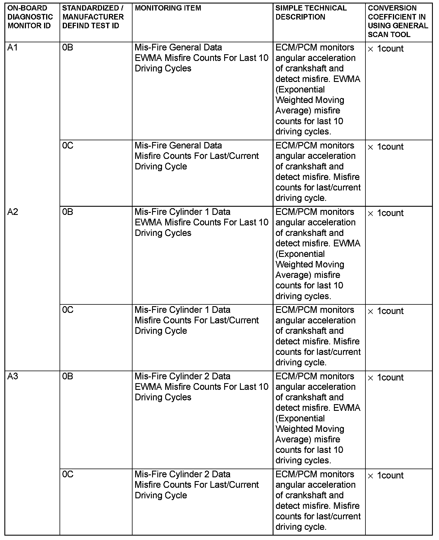 - When not finishing the monitor of the driving cycle for the request of On-Board Monitoring Test Request, the ECM/PCM outputs the stored latest monitor test result.