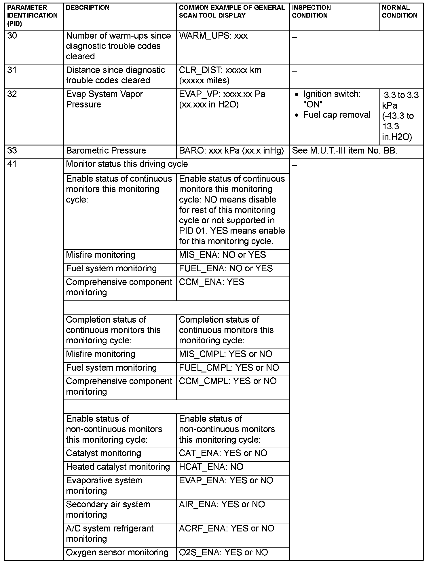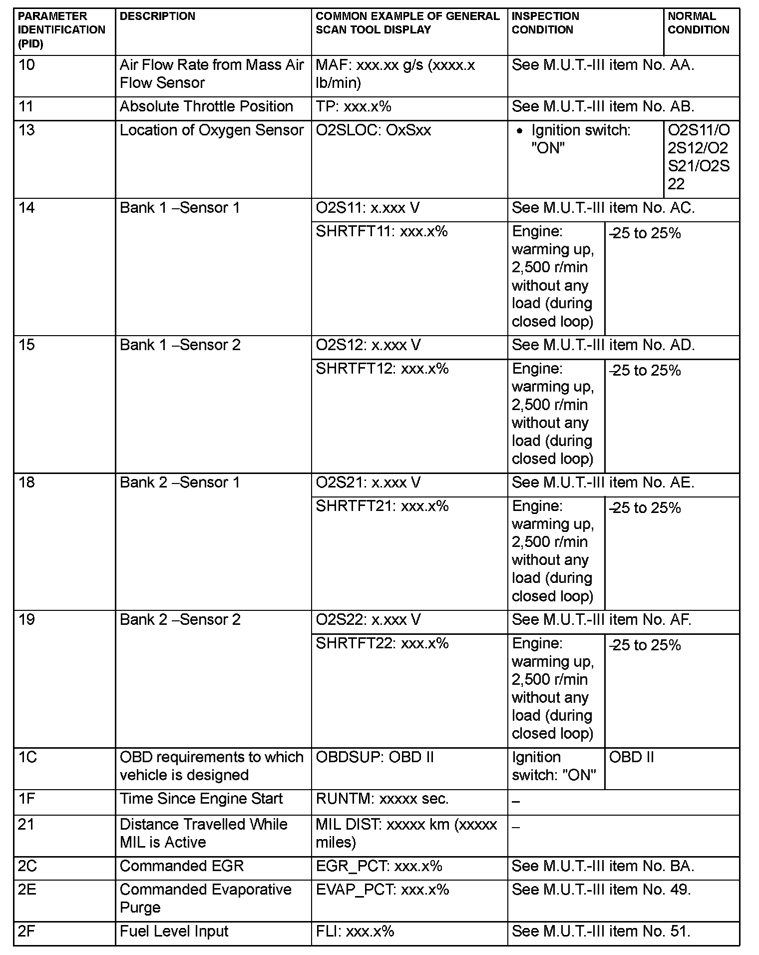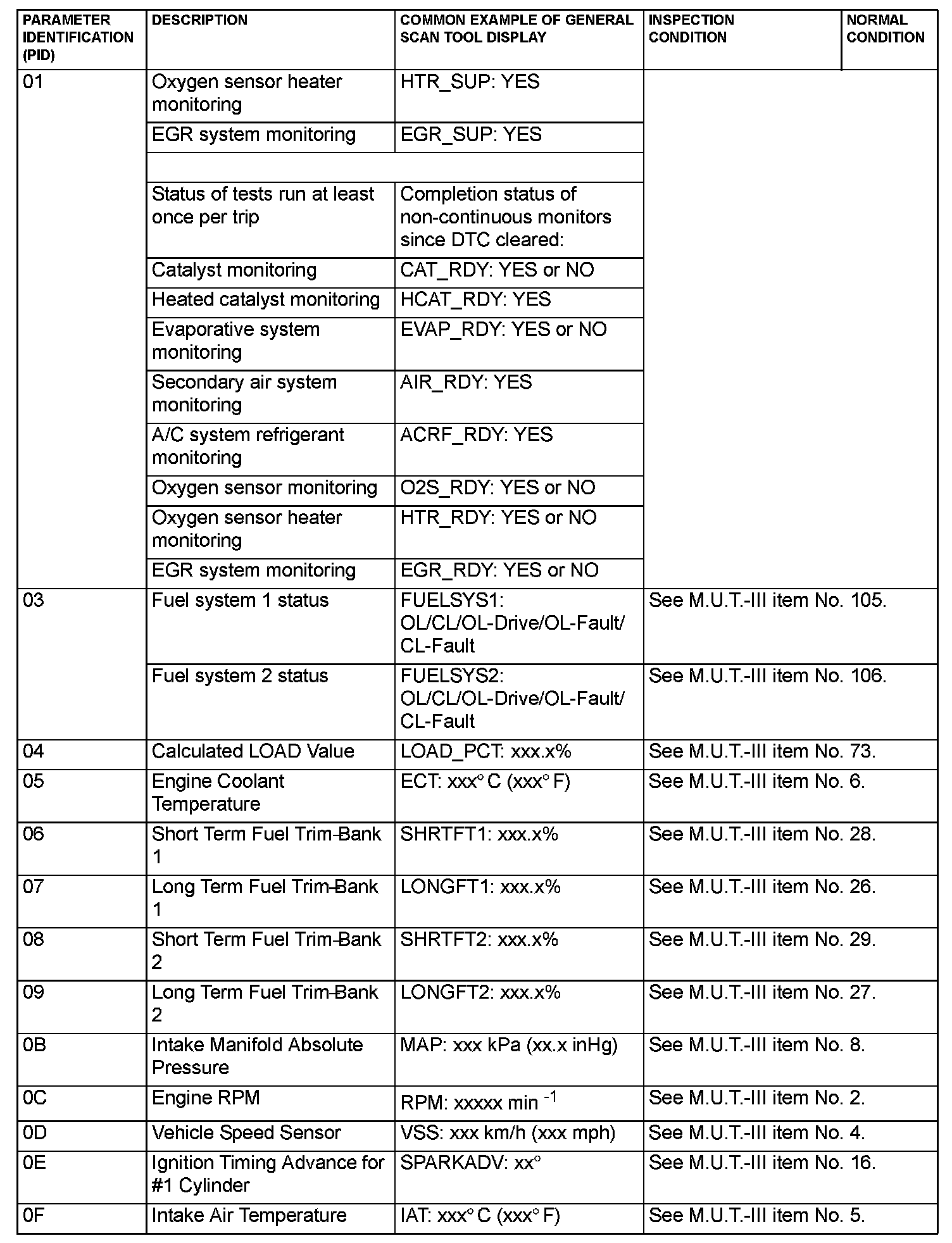 NOTE: GST MODE 01 can be accessed through the use of a general scan tool.