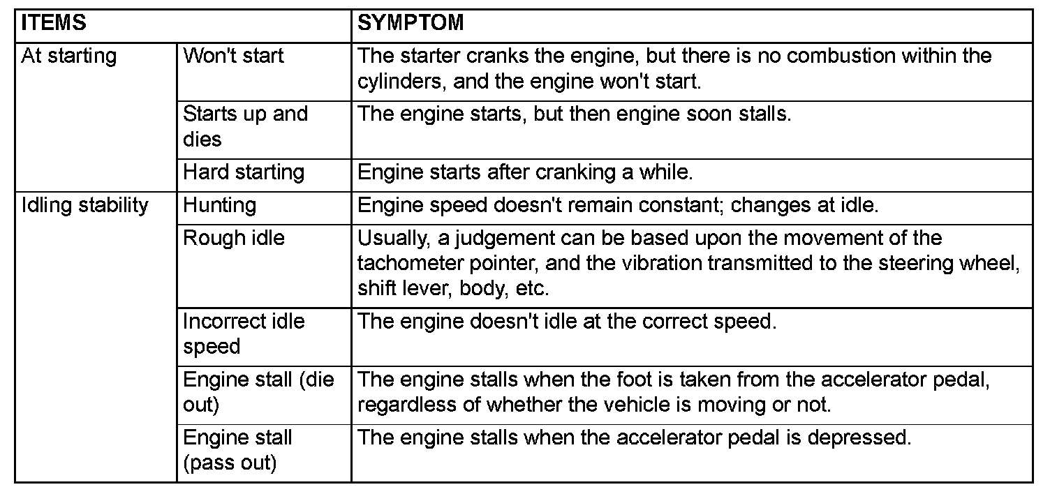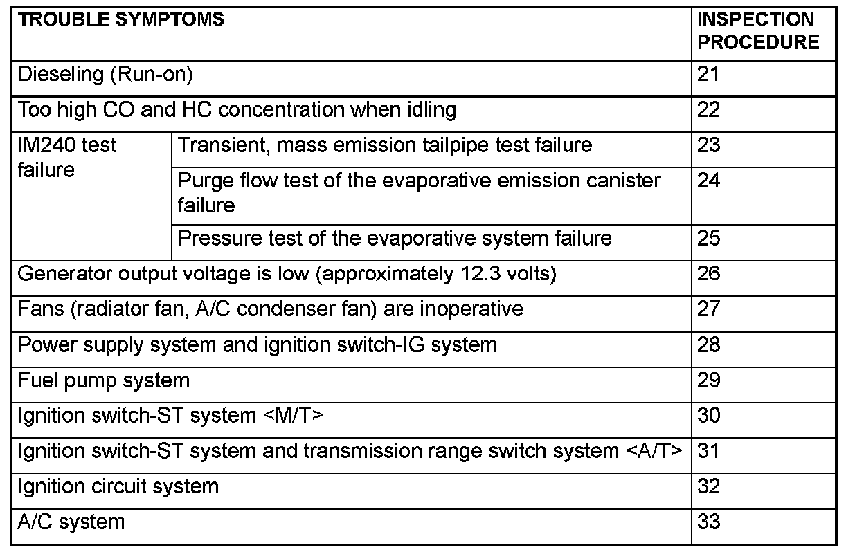 SYMPTOM CHARTInspection Chart For Trouble Symptoms Part 1: