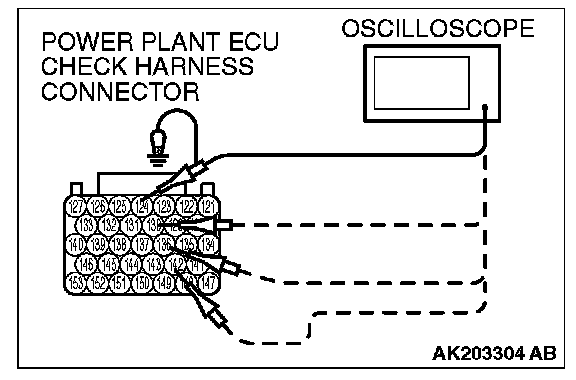 2. Connect the oscilloscope probe to check harness terminal No. 124, No. 130, No. 136 and No. 142.