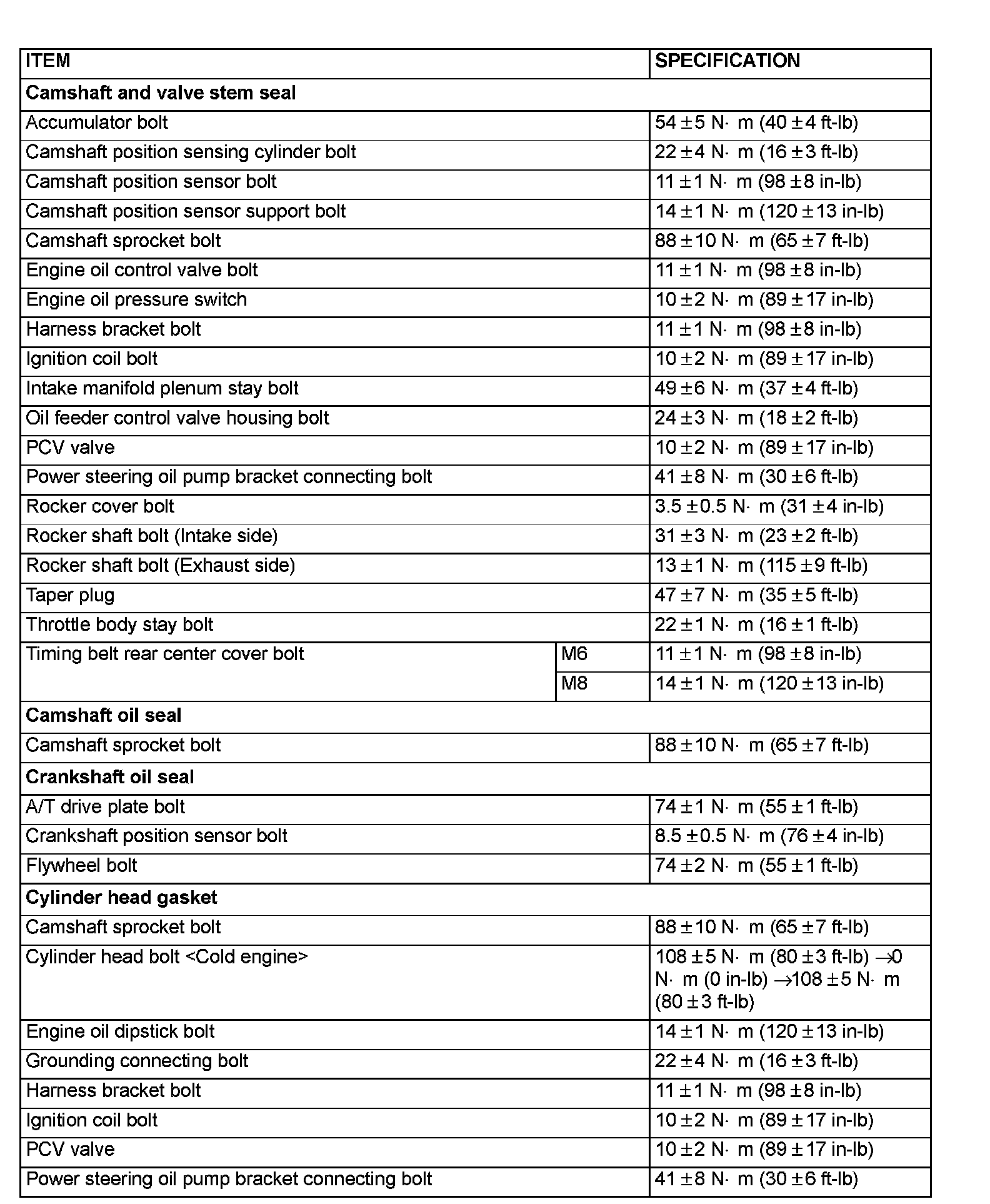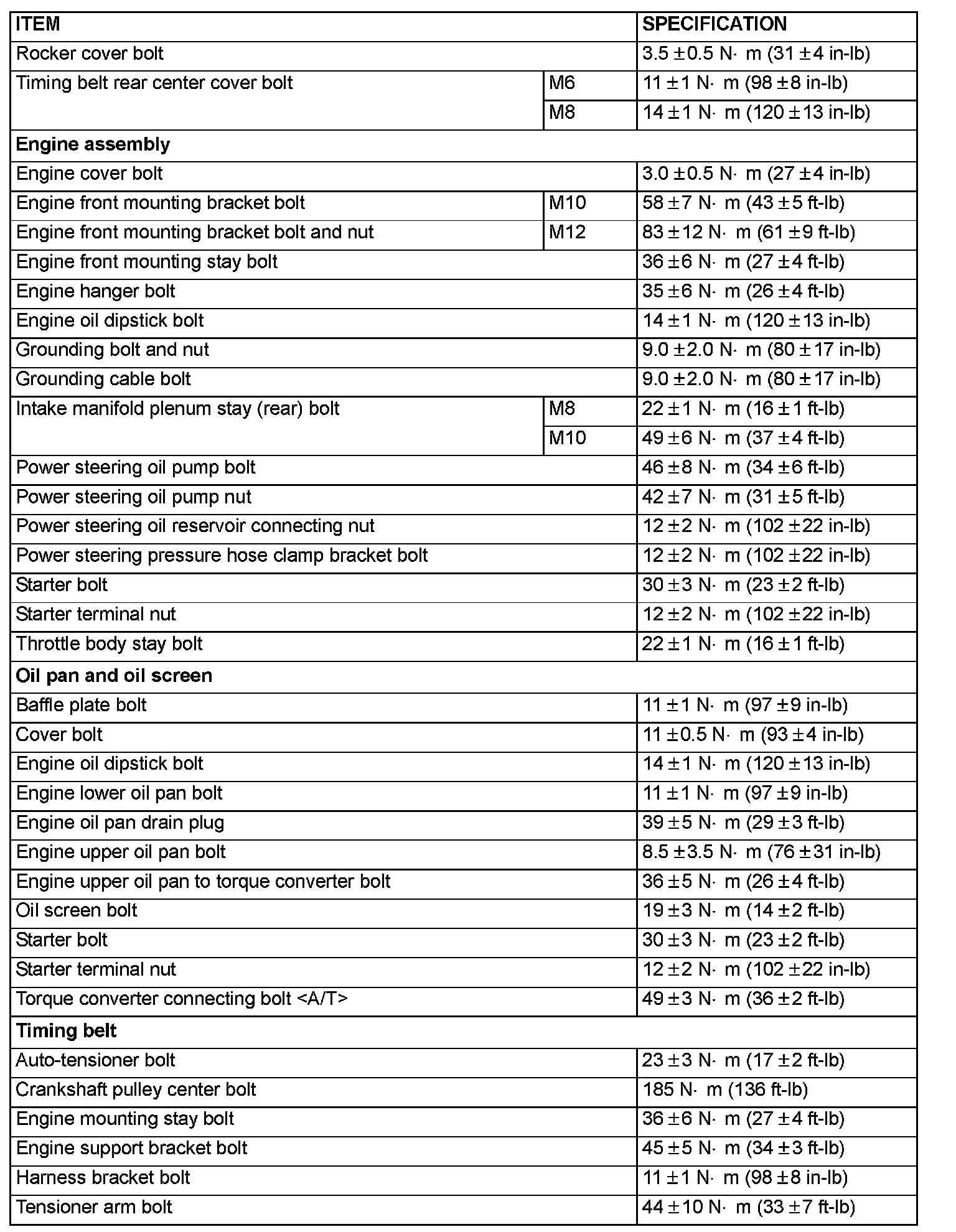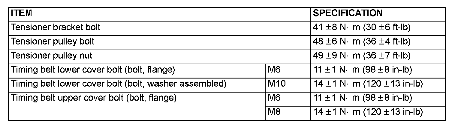 FASTENER TIGHTENING SPECIFICATIONS: