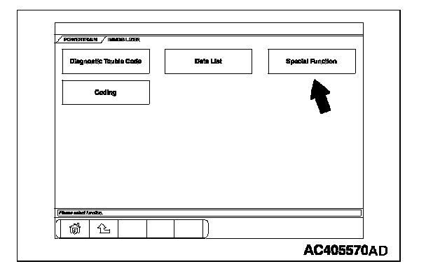 Encrypted Code Registration Using Ignition Key [Registration Using Scan Tool MB991958 (M.U.T.-III Sub Assembly)]