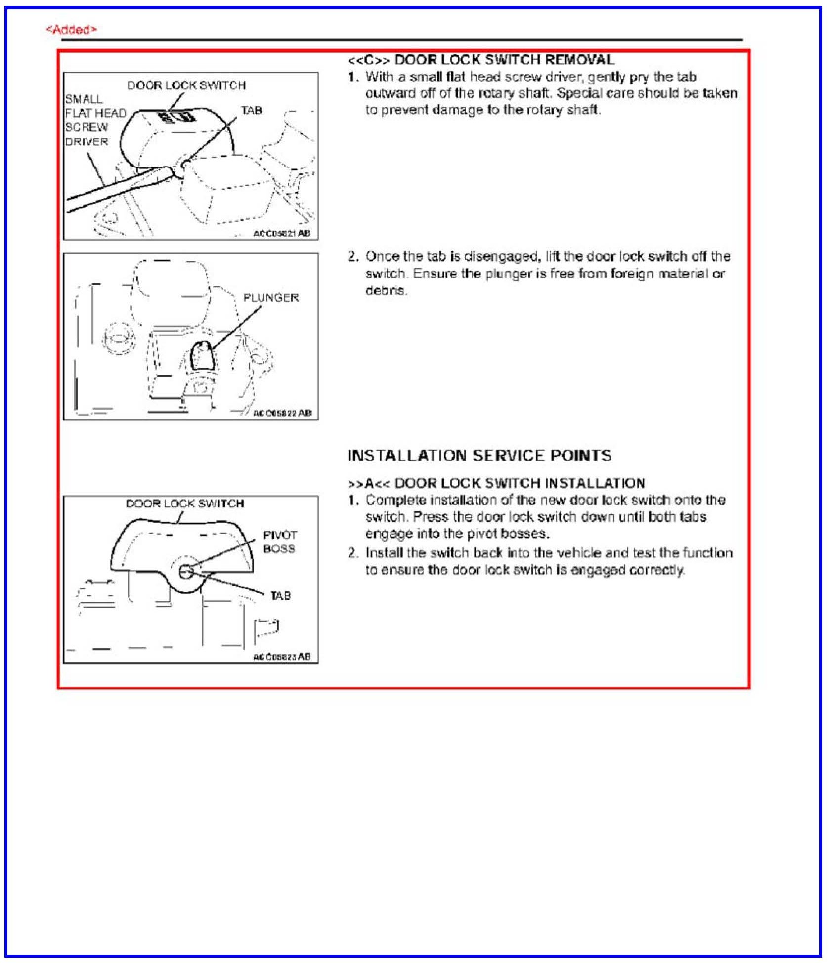 DOOR LOCK ROCKER SWITCH BUTTON REPLACEMENT - SERVICE MANUAL REVISION