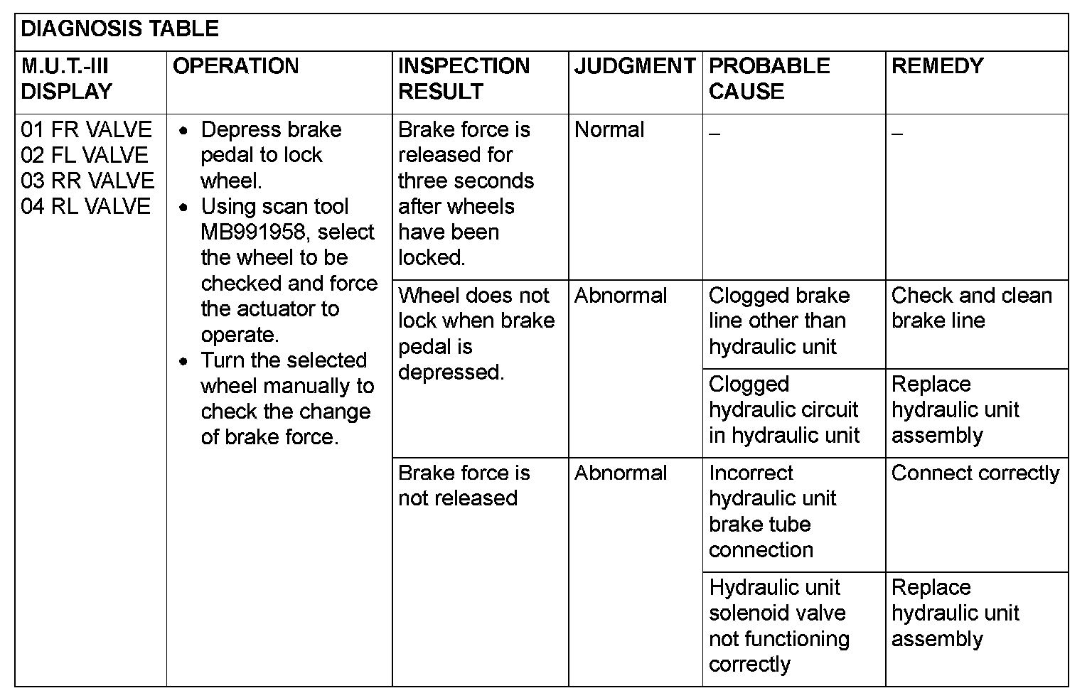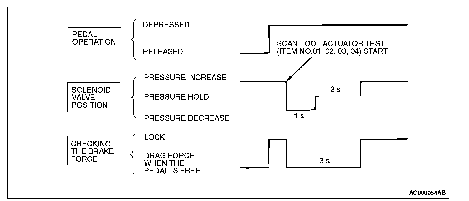 NOTE: When the ABS has been interrupted by the fail-safe function, scan tool MB991958 actuator testing cannot be used.