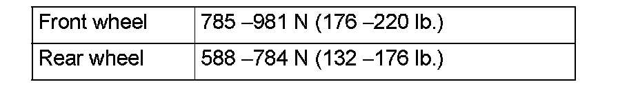 ^ When testing the front brakes, apply the parking brake. When testing the rear brakes, stop the front wheels with chocks.