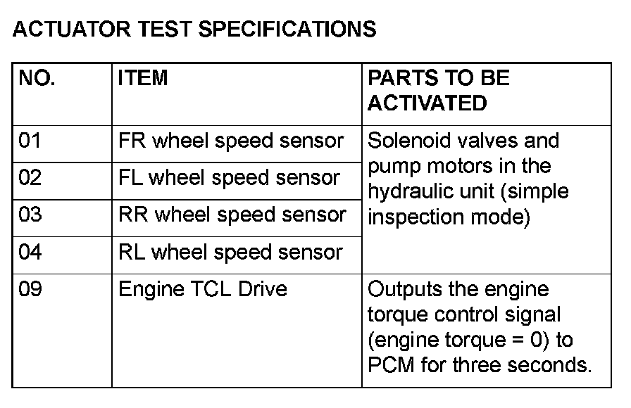 ACTUATOR TEST SPECIFICATIONS: