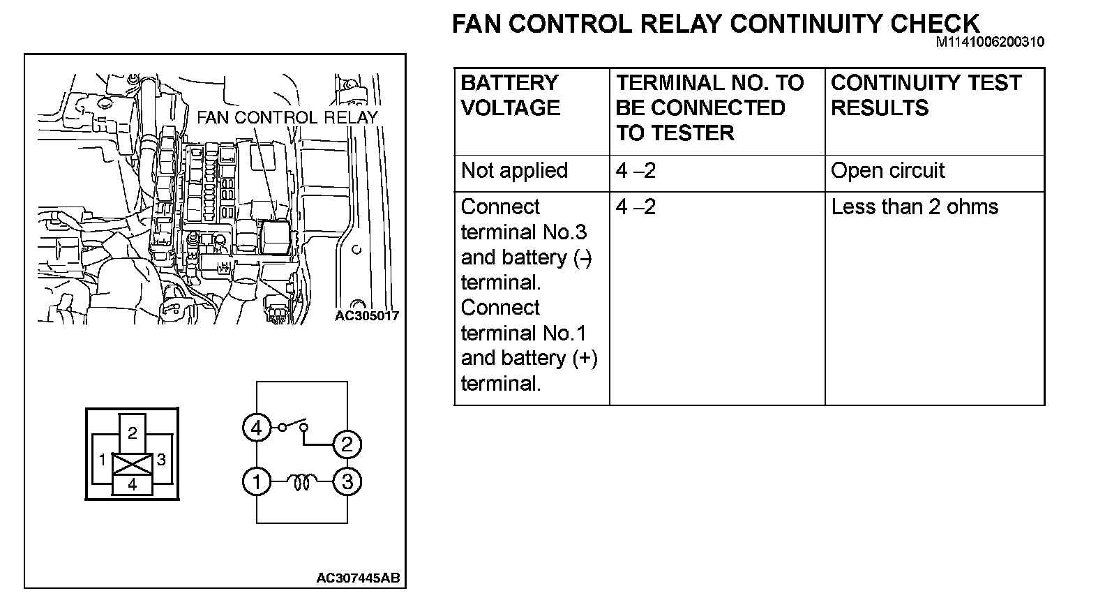 FAN CONTROL RELAY CONTINUITY CHECK