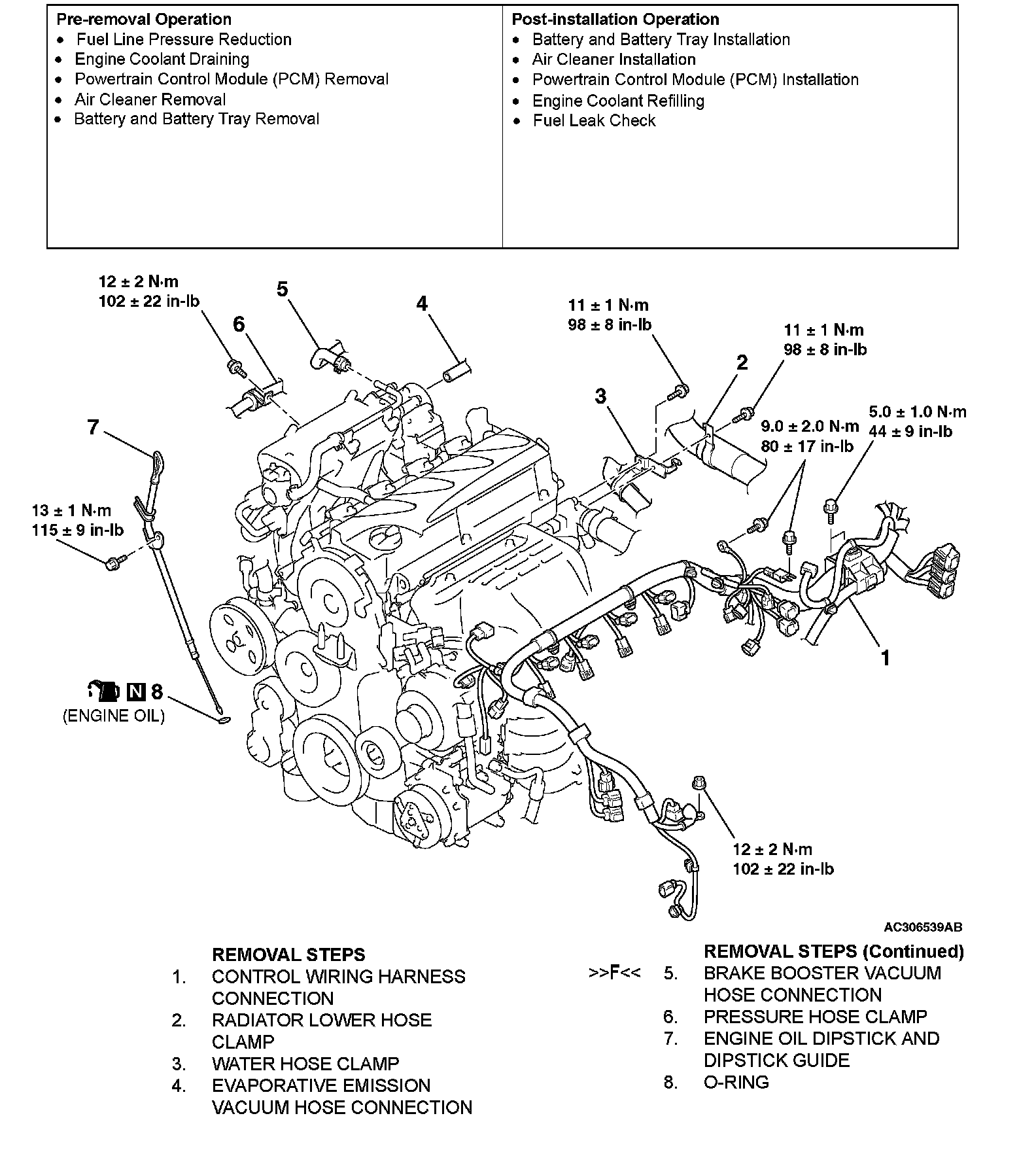 Tightening torque: 89 ± 9 Nm (65 ± 7 ft-lb)