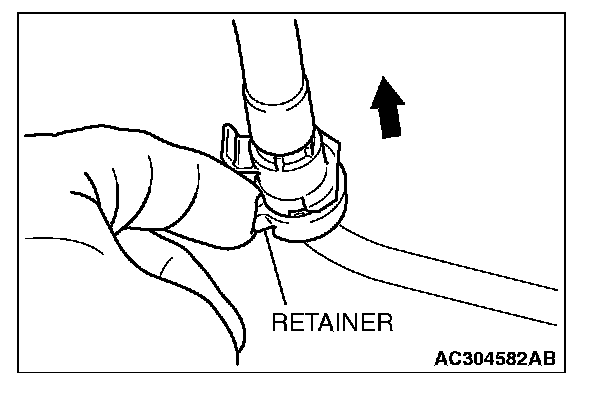 2. Remove the fuel high-pressure hose in the direction shown in the figure while the retainer is pulled up.