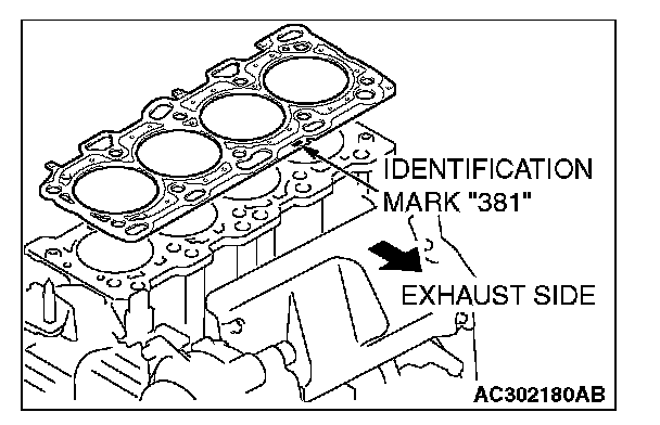 2. Assemble to the cylinder block so the cylinder head gasket identification mark of "381" is at the top surface and on the exhaust side.