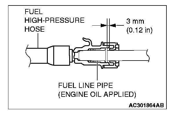 CAUTION: After connecting the fuel high-pressure hose, slightly pull it to ensure that it is installed securely. Also confirm that there is a play approximately 3 mm (0.12 inch). Then install the stopper securely.