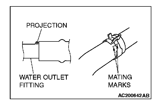1. Insert radiator upper hose until it contacts the projection on the water outlet fitting.