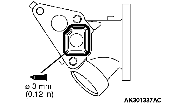 1. Apply a 3 mm (0.12 in.) diameter bead of sealant MITSUBISHI Genuine Part number MD970389 or equivalent to the groove as shown in the illustration.