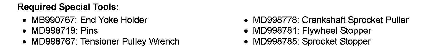 13. Holding the tensioner pulley with special tool MD998767 and torque wrench, tighten the center bolt to specification.
