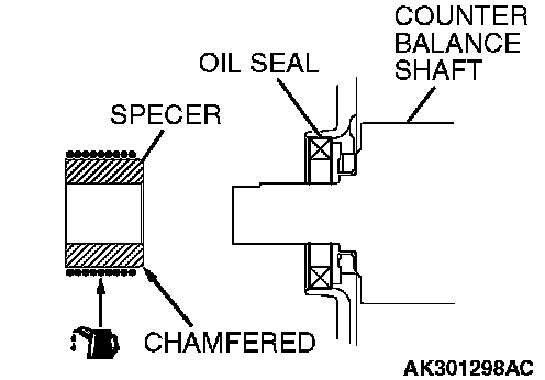2. Install the spacer with the chamfered end facing toward the oil seal.