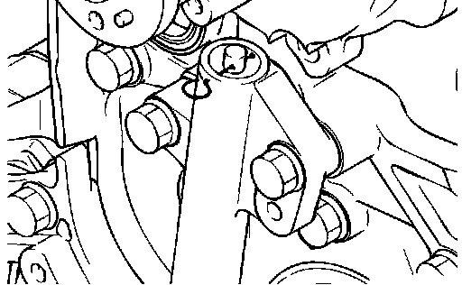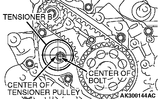3. Make sure that the tensioner pulley center and the bolt center are positioned as shown in the illustration.