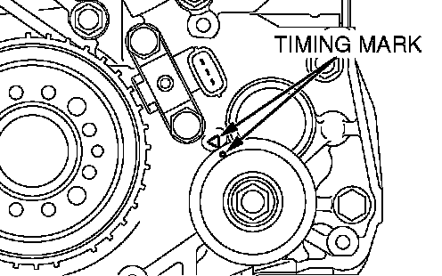 2. Align the timing mark on the crankshaft sprocket with the timing mark on the front case.