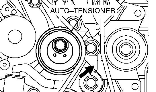 5. Install the auto-tensioner onto the front case and tighten to the specified torque.