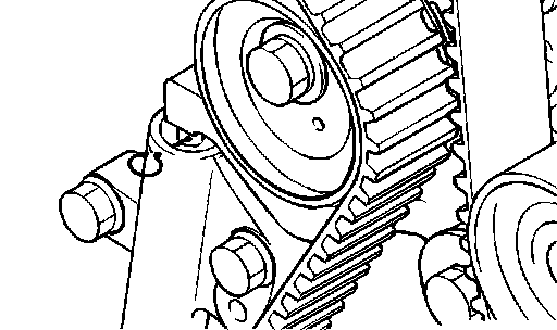 2. Loosen the tensioner pulley bolt, and then remove the timing belt.