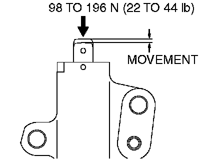 4. Press the rod with a force of 98 to 196 N (22 to 44 pound) and measure the movement of the rod. If the measured value is out of the standard value, replace the auto-tensioner.