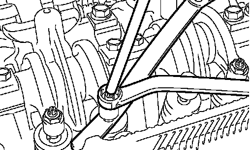 11. Install special tool MD998767, socket wrench and torque wrench, onto the tensioner pulley, and loosen the tensioner pulley center bolt.