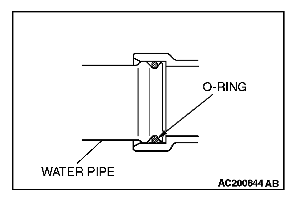 Fit the O-ring into the groove of the water pipe ends, and apply water or coolant to the circumference of the O-ring and the pipe bores to insert the pipe assembly.