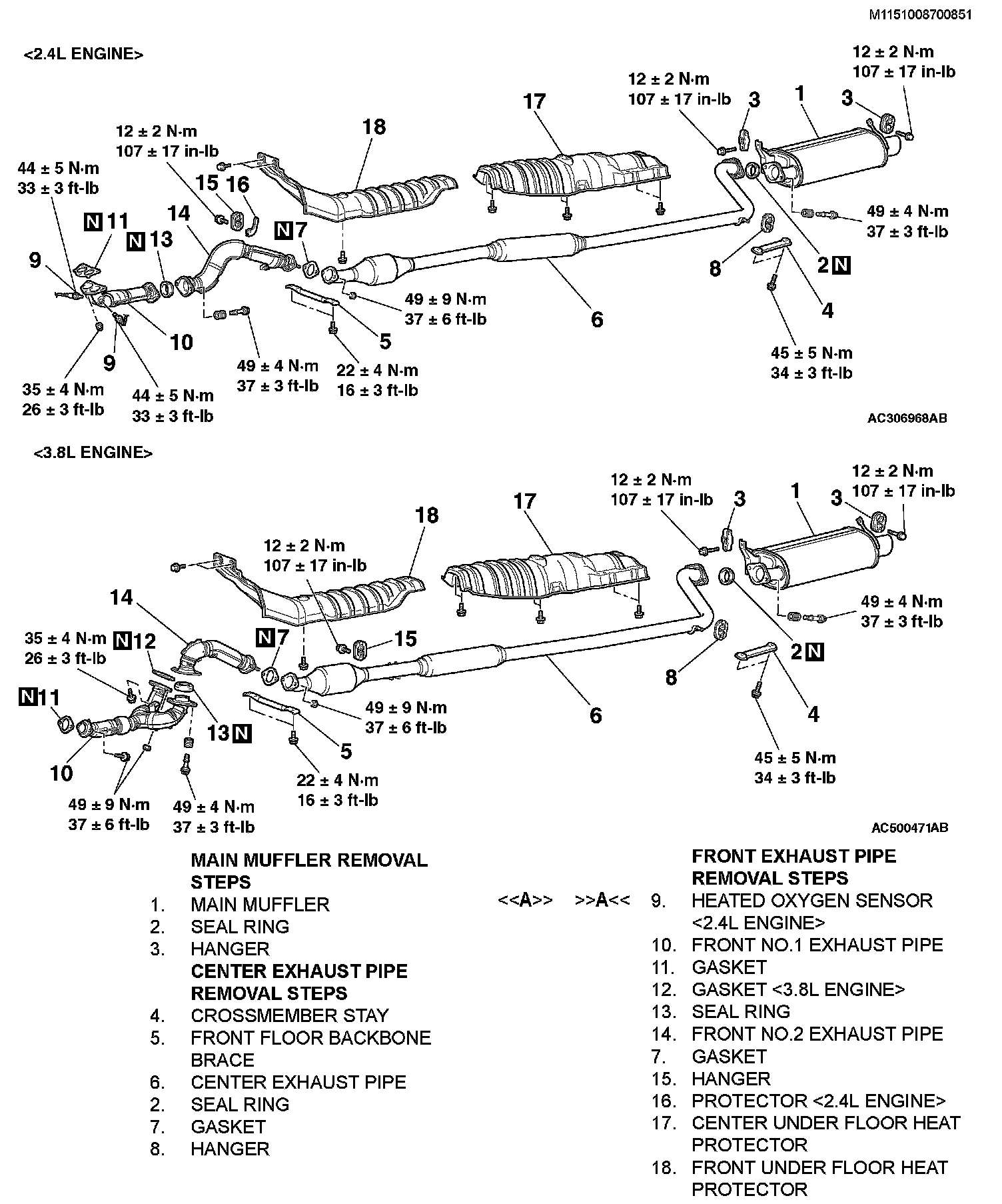EXHAUST PIPE AND MAIN MUFFLERRemoval Steps 1 - 18: