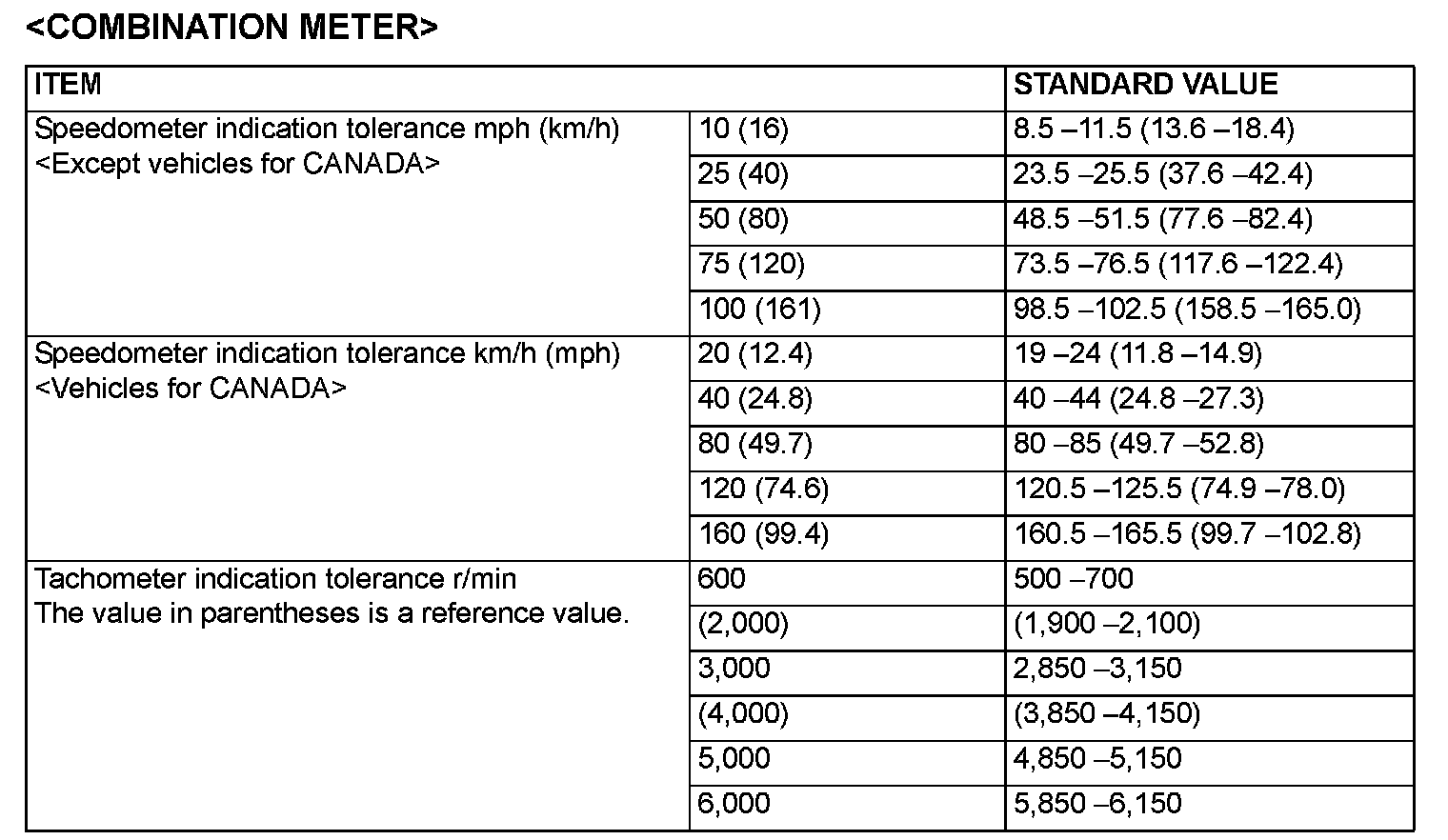 Combination Meter - Service Specifications Part 1: