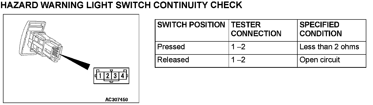 Hazard Warning Light Switch Continuity Check: